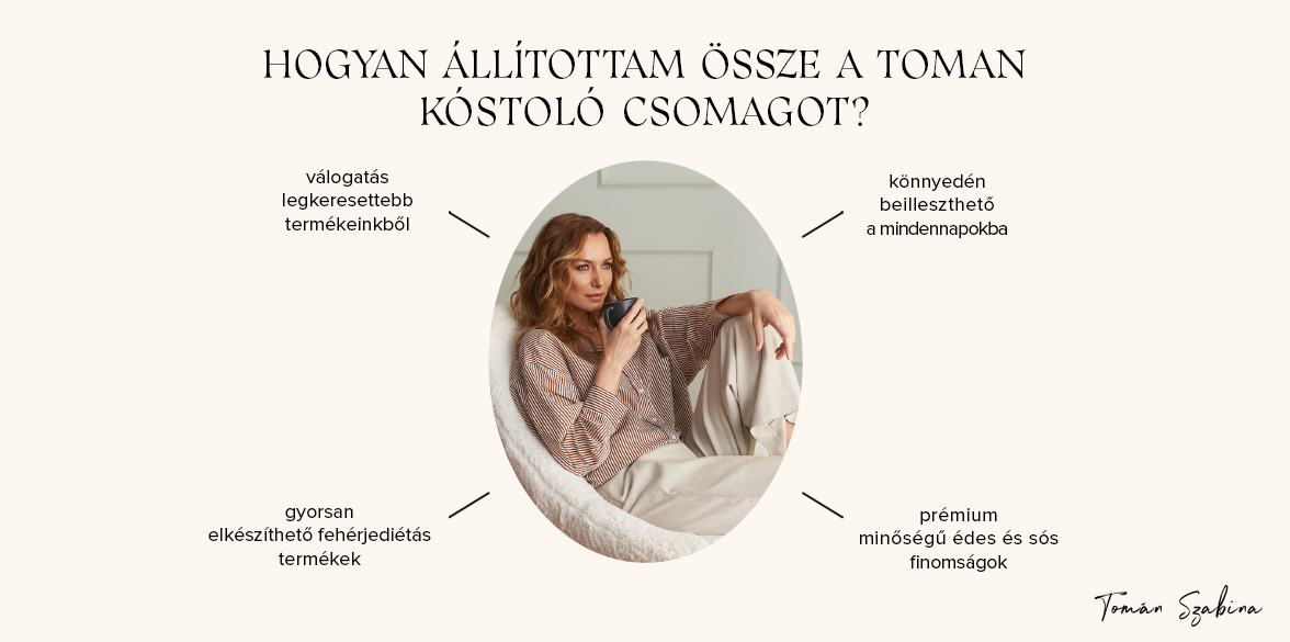 A Tomán Szabina által alapított Tomán Lifestyle 2015-től saját márkás fehérjediétás termékek forgalmazója és az ehhez kapcsolódó életmódprogram megalkotója. A Toman Diet sikerének titka: vendégeink szakértő felügyelet mellett megtapasztalják, hogy milyen éhezés nélkül, prémium kategóriás élelmiszerek széles választékával elérni és megtartani ideális testsúlyukat. Napjainkban a Tomán Lifestyle már nem csak a diétáról szól: a Toman Vital természetes hatóanyagai a szervezet harmonikus egyensúlyának fenntartását segítik, a Toman Snack gondoskodik arról, hogy ne kelljen lemondani a finomságok okozta élvezetekről.