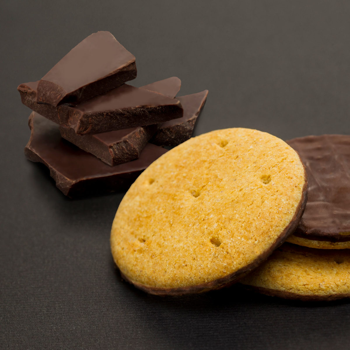 2019-10-23Fehérjében és élelmi rostban gazdag keksz étcsokoládé bevonattal.