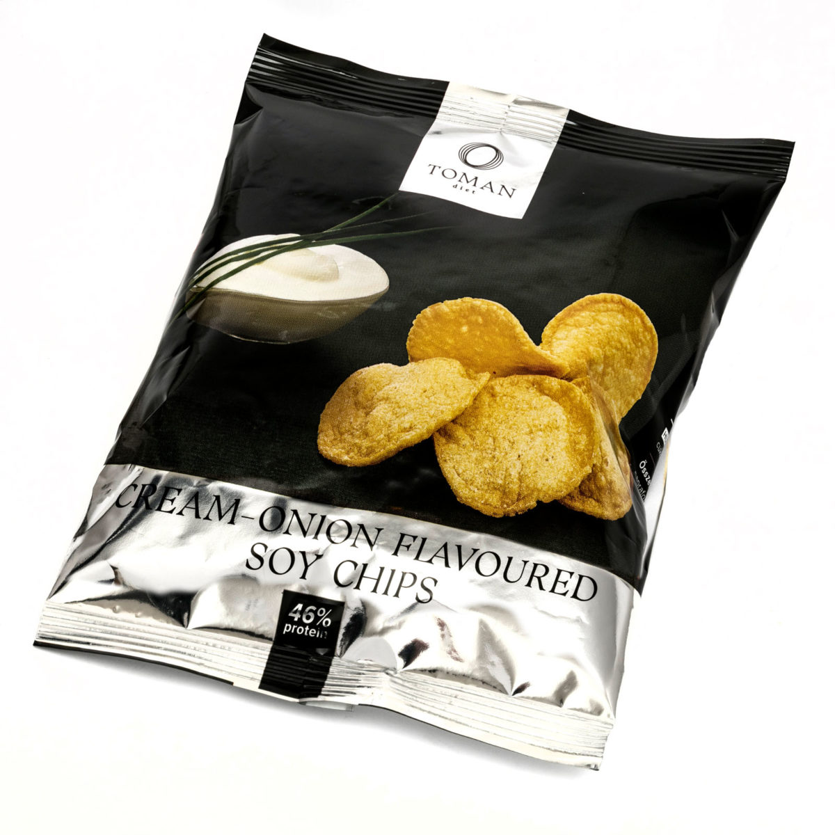 Fehérjében- és élelmi rostban gazdag, alacsony cukortartalmú tejfölös-hagymás ízű szójachips.