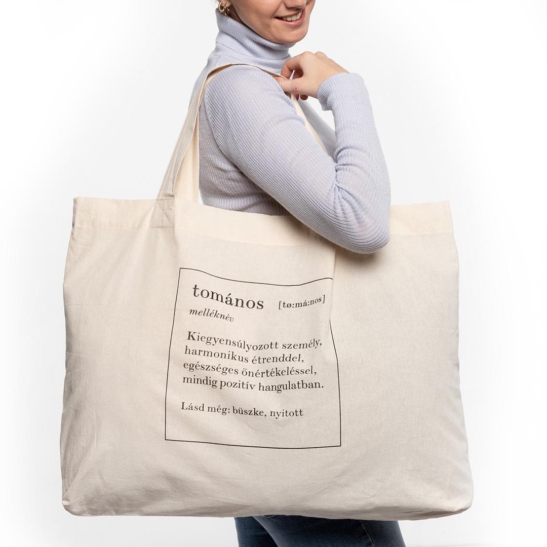 A Toman vászontáska alkalmas konferencia táskának, reklámtáskának, és bevásárlótáskának is (körülbelül 10 kg a teherbírása).